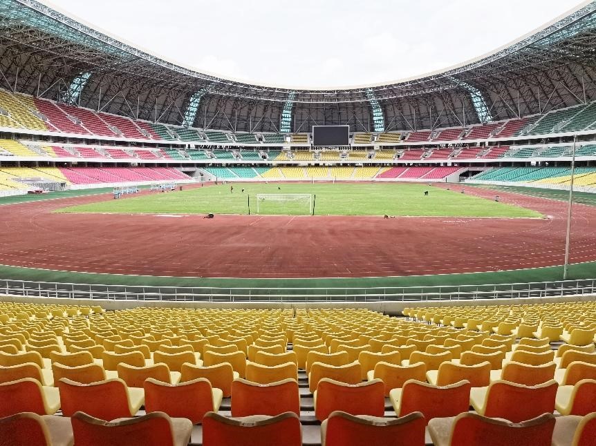 Photo shows China-aided Kintele Stadium in Brazzaville, capital of the Republic of the Congo. (Photo by Shen Xiaoxiao/People’s Daily)