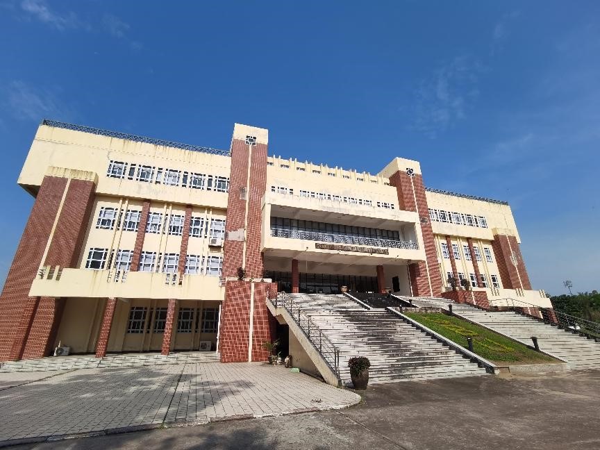 Photo shows the exterior of the China-assisted library of the Marien Ngouabi University in Brazzaville, capital of the Republic of the Congo. (Photo by Shen Xiaoxiao/People’s Daily)