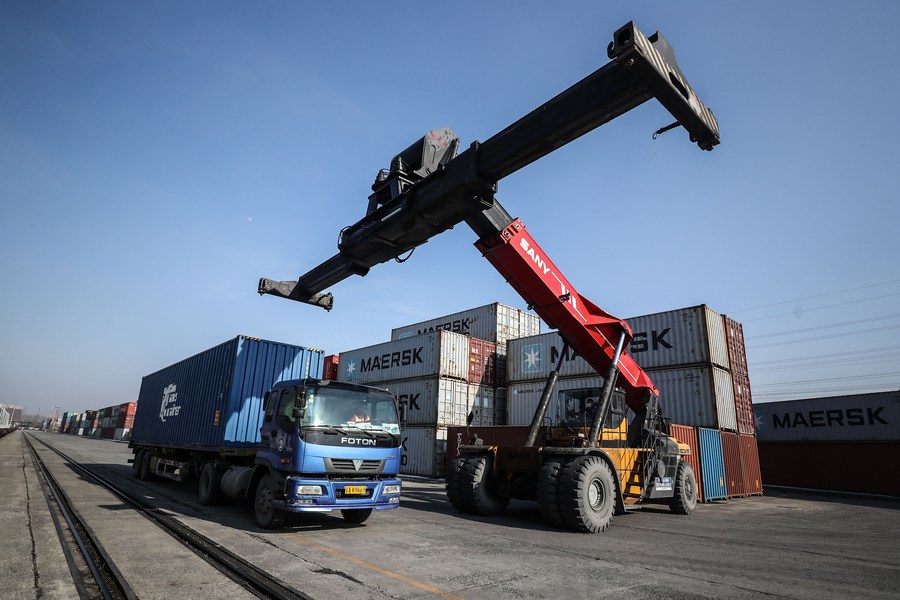 During the same period, as a pillar for trade and economic cooperation across the Eurasian continent, the China-Europe freight train service handled a record 15,000 trips, and transported 1.46 million twenty-foot equivalent units (TEU) of goods, up 22 percent and 29 percent respectively over the previous year.