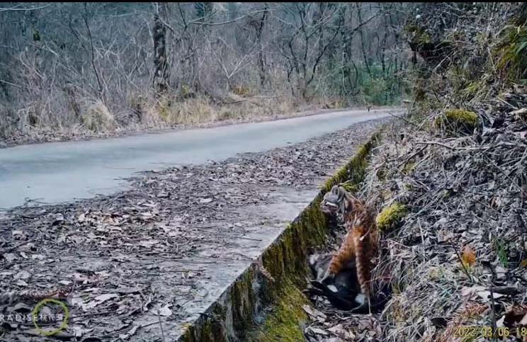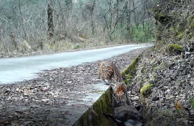 It is the country’s first high-definition footage captured of the wild cat during feeding.