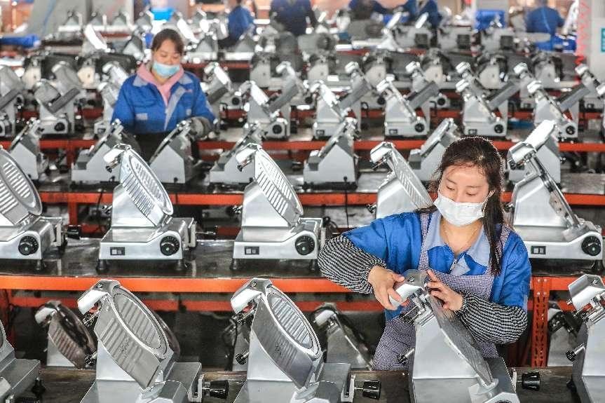 Cooking utensils to be exported to the European and American markets are being assembled at a workshop of the Anhui Hualing Kitchen Equipment Co., Ltd. in Ma'anshan, east China's Anhui province, April 1, 2022. (People's Daily Online/Wang Wensheng)