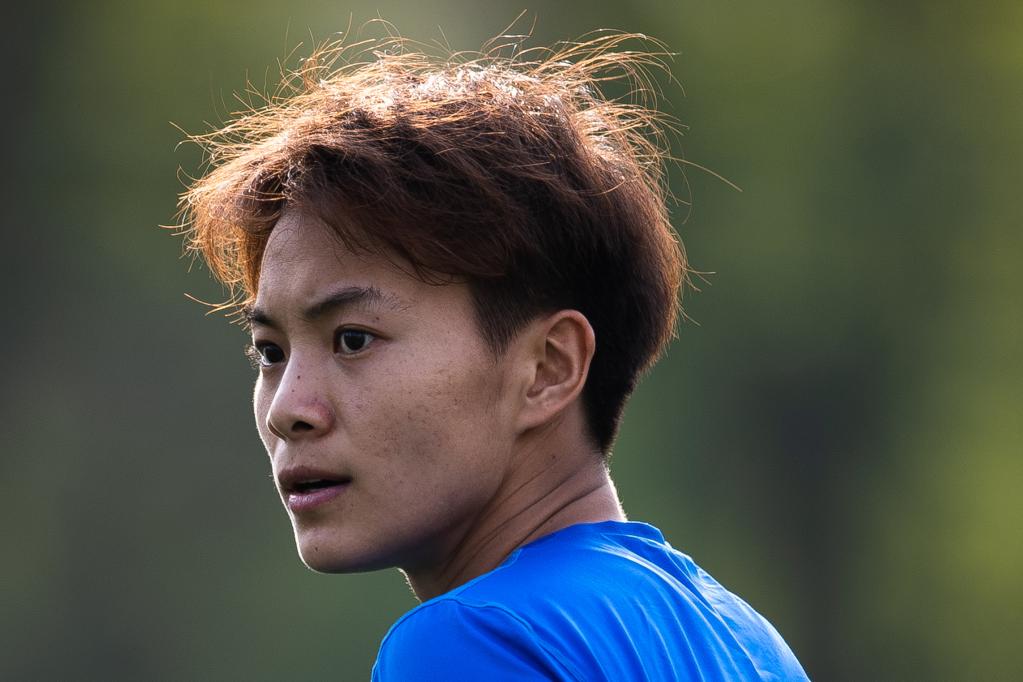 Chinese female football player Wang Shuang attends training session