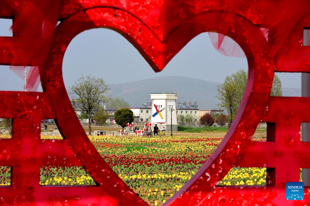 Tourists view tulips at a scenic spot in Suiping County, central China's Henan Procince, April 7, 2022. (Xinhua/Zhu Xiang)