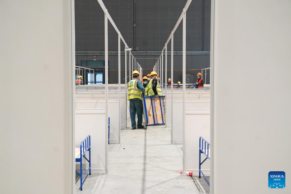 Shanghai is converting the National Exhibition and Convention Center (NECC) into a makeshift hospital with a planned capacity of 40,000 beds. Upon completion, it is expected to act as the biggest such hospital for those testing positive for COVID-19 in the metropolis. (Xinhua/Ding Ting)