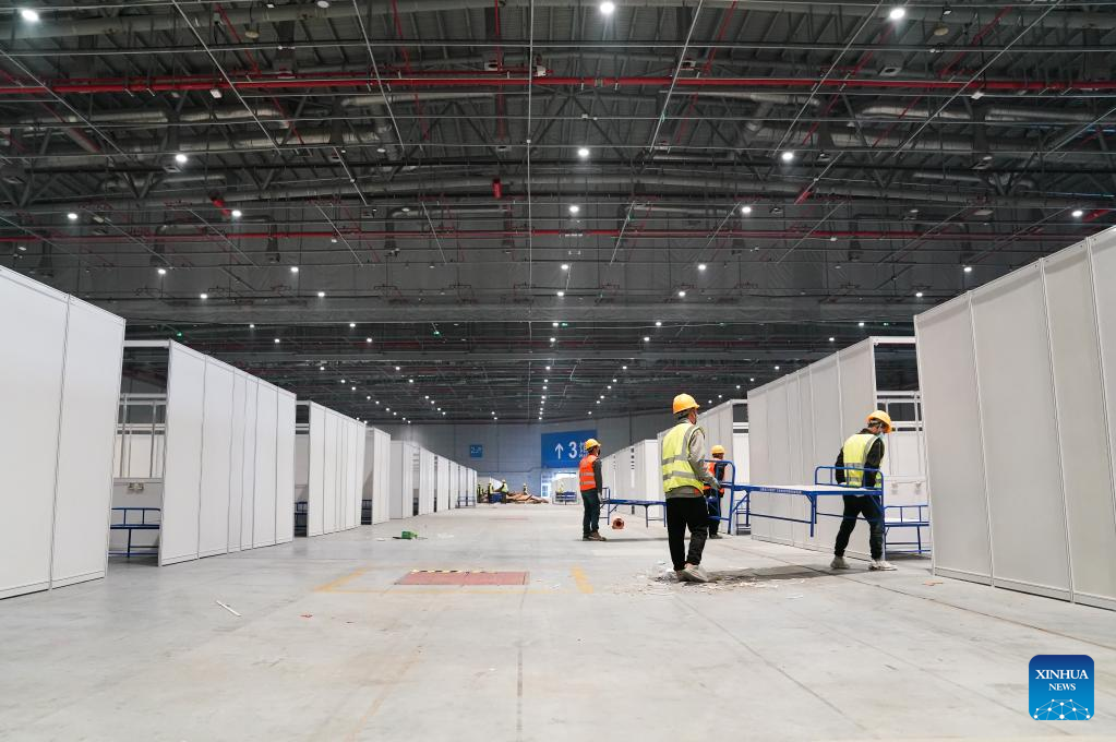Shanghai is converting the National Exhibition and Convention Center (NECC) into a makeshift hospital with a planned capacity of 40,000 beds. Upon completion, it is expected to act as the biggest such hospital for those testing positive for COVID-19 in the metropolis. (Xinhua/Ding Ting)