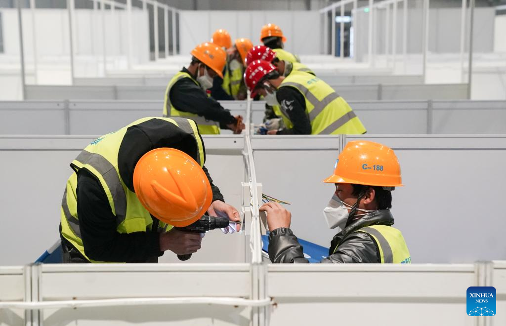 Shanghai is converting the National Exhibition and Convention Center (NECC) into a makeshift hospital with a planned capacity of 40,000 beds. Upon completion, it is expected to act as the biggest such hospital for those testing positive for COVID-19 in the metropolis. (Xinhua/Ding Ting)