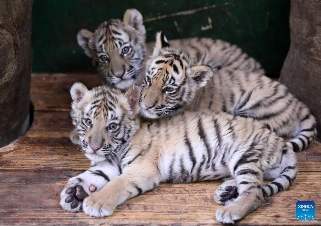 The newly-born Bengal tiger quintuplets in the park will make their debut on Friday. (Xinhua/Huang Guobao)