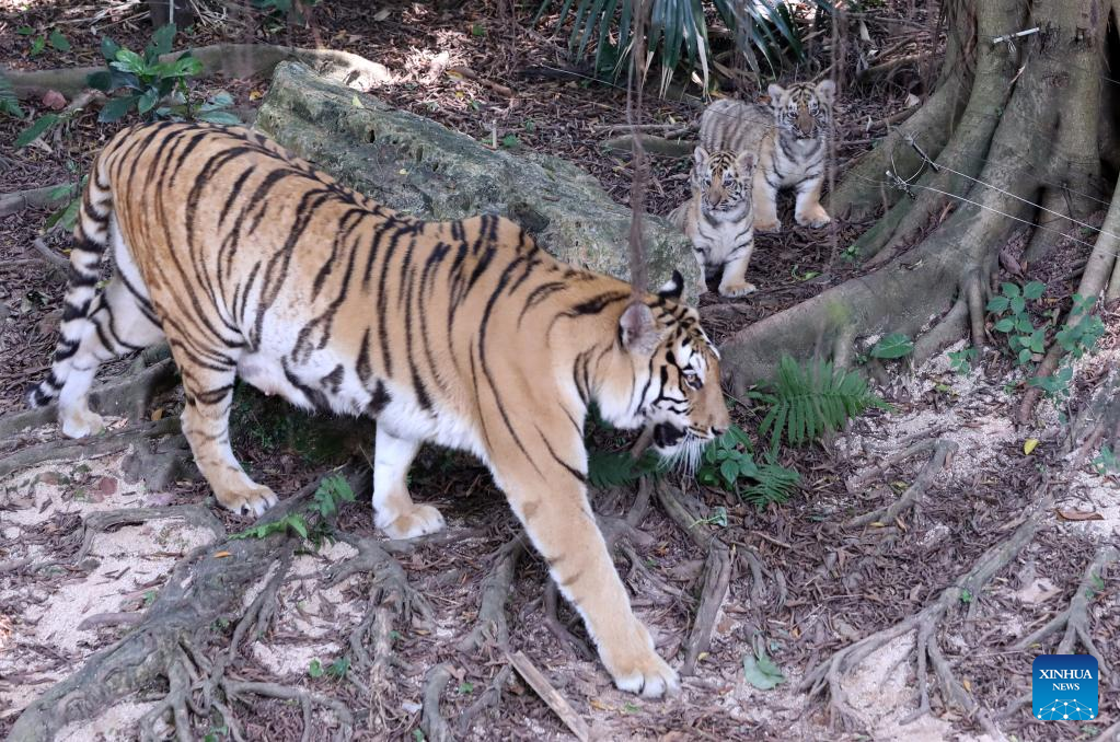 Bengal tiger "Weiwei" and her cubs are seen at the Chimelong Safari Park in Guangzhou, south China's Guangdong Province, April 7, 2022.