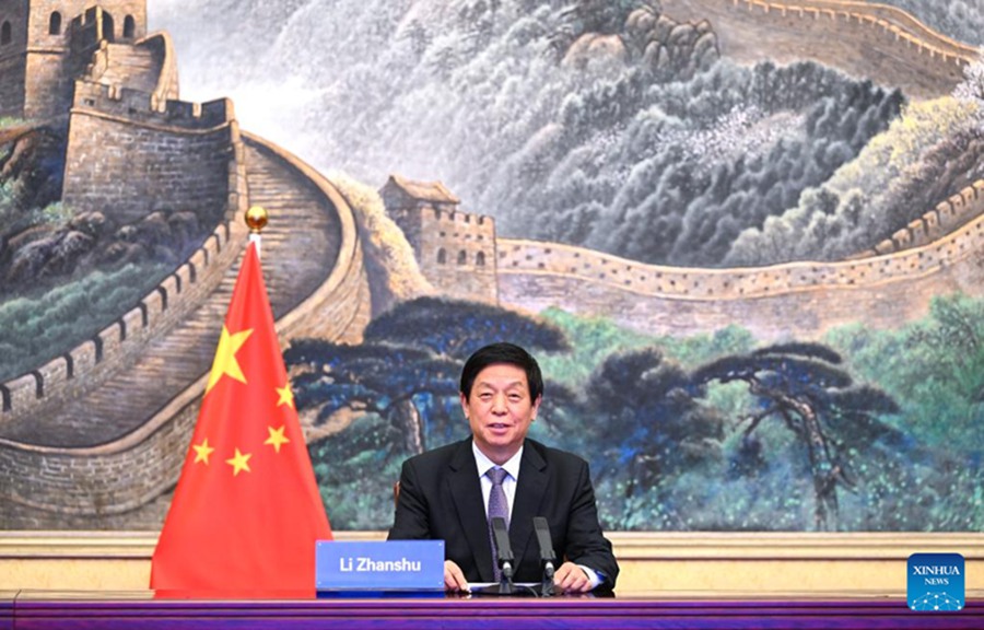 BEIJING, April 8 (Xinhua) -- China's top legislator Li Zhanshu on Friday held talks via video link with Agni Sapkota, speaker of Nepal's House of Representatives, calling for further enhancement of bilateral relations.