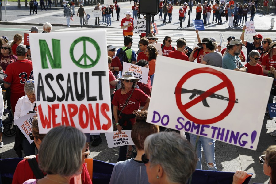 Around half of Americans -- 48 percent -- see gun violence as a massive problem in the United States, a Pew Research Center survey showed. Another 24 percent of U.S. adults say gun violence is a moderately big problem. But Americans are divided over whether restricting legal gun ownership would lead to fewer mass shootings or tragedies at home.