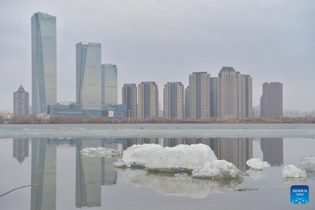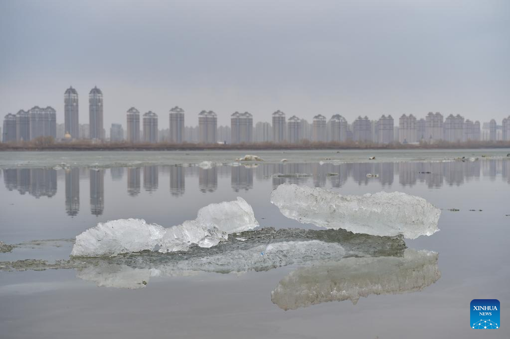 Ice flow occurs in Harbin section of Songhua River in NE China