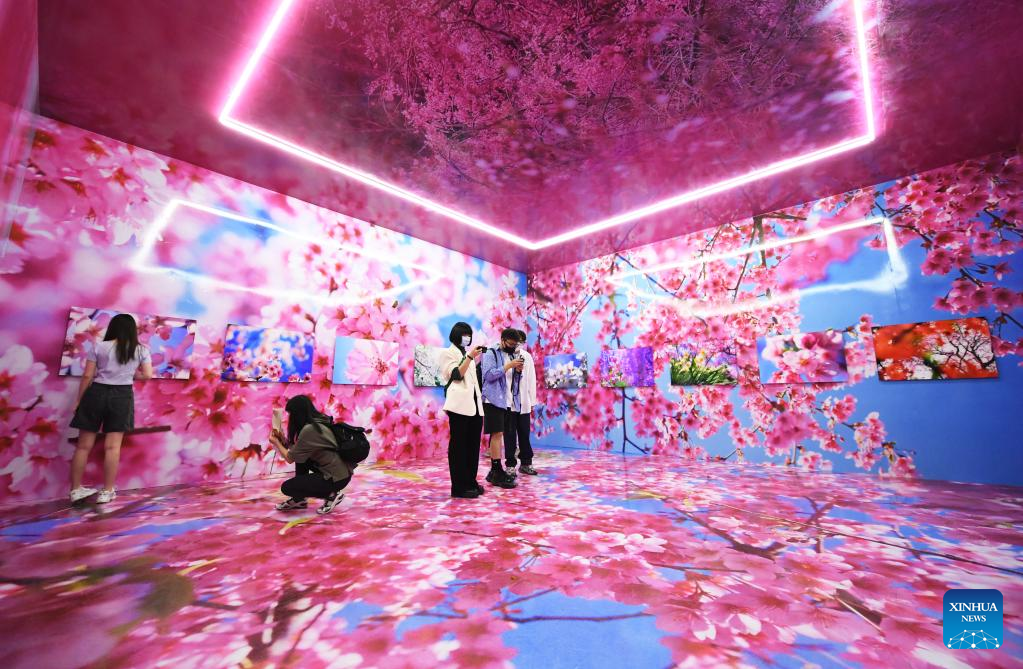 People visit the exhibitions at the Times Art Museum in Beijing, capital of China, April 10, 2022. (Xinhua/Ren Chao)