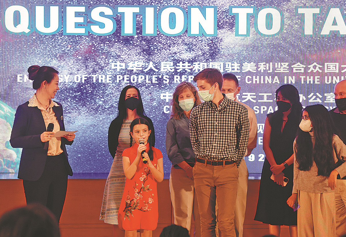 The students from 20 schools in 13 states sent the embassy their questions, which were then delivered to the three Chinese astronauts on the Tiangong space station. Their prerecorded responses to some of the questions were shared with students, parents and teachers, who joined the event in person at the Chinese embassy in Washington, DC, or through the Zoom communications platform.