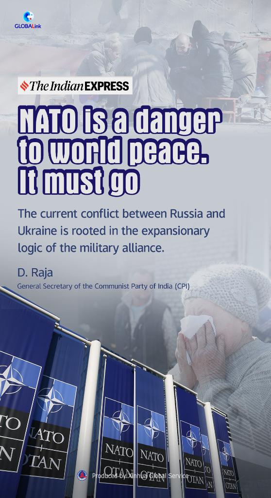 As NATO's track record suggests, instead of the "collective security" it promised, it has only offered grave insecurity to nations opposed to U.S. interests, said D. Raja, general secretary of the Communist Party of India, in an opinion published by The Indian Express.