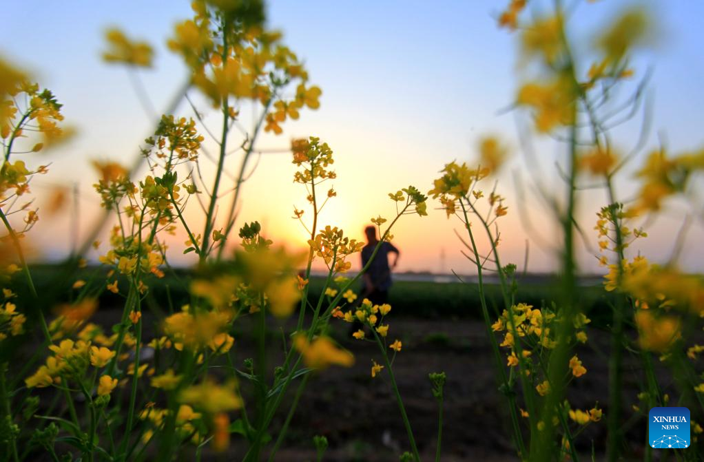 A farmer works in the fields in Dongjiazhuang Village of Pingyi County, Linyi City, east China’s Shandong Province, April 10, 2022. (Xinhua/Wu Jiquan)