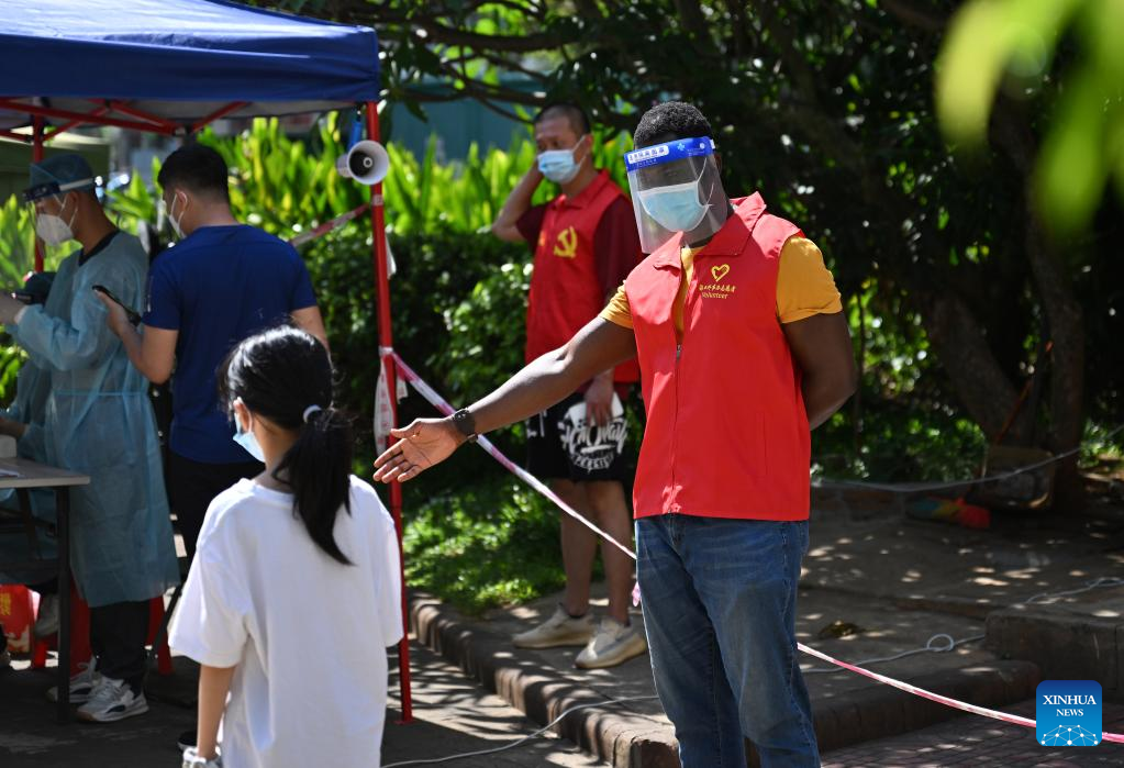 HAIKOU, April 11 (Xinhua) -- As China strengthens its epidemic prevention and control measures in the face of a COVID-19 resurgence, many volunteers including foreigners have joined the anti-epidemic fight.