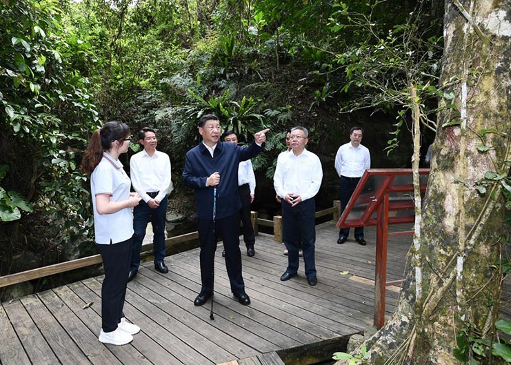 Xi made the remarks during his visit to a section of a tropical rainforest national park in the city of Wuzhishan on Monday.