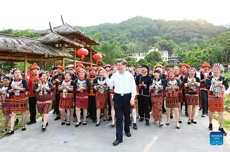 Xi walked into the homes of local ethnic Li people, and had cordial exchanges with village cadres and villagers.