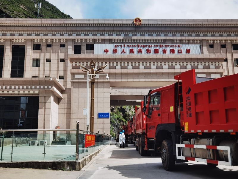 Engineering trucks are rapidly released at Jilong Port, southwest China's Tibet autonomous region. (Photo courtesy of Lhasa customs)