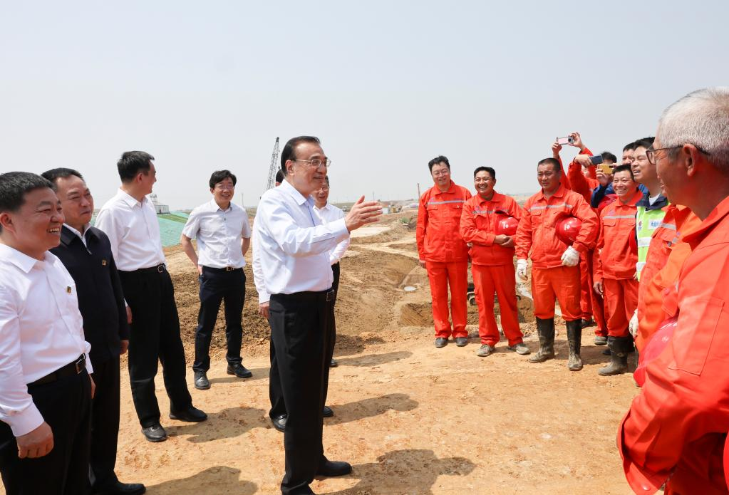 Chinese Premier Li Keqiang, also a member of the Standing Committee of the Political Bureau of the Communist Party of China Central Committee, visits a water conservancy project construction site during an inspection tour of east China's Jiangxi Province, April 11, 2022. Li made an inspection tour of Jiangxi Province on Monday and Tuesday. (Xinhua/Ding Lin)