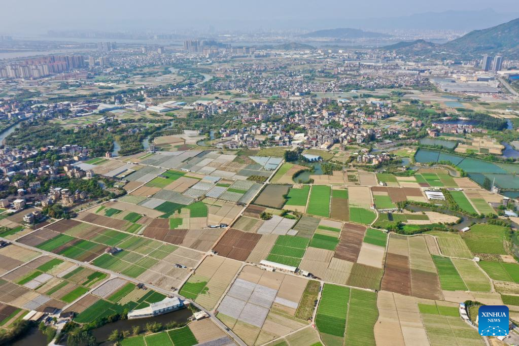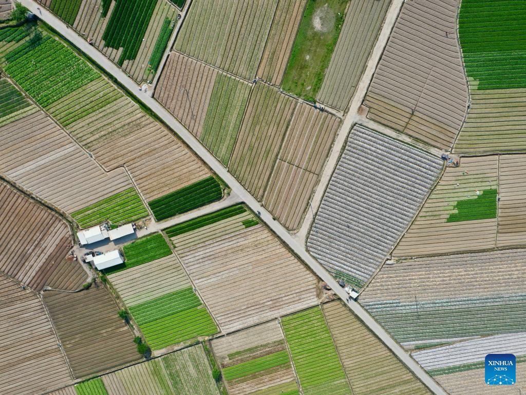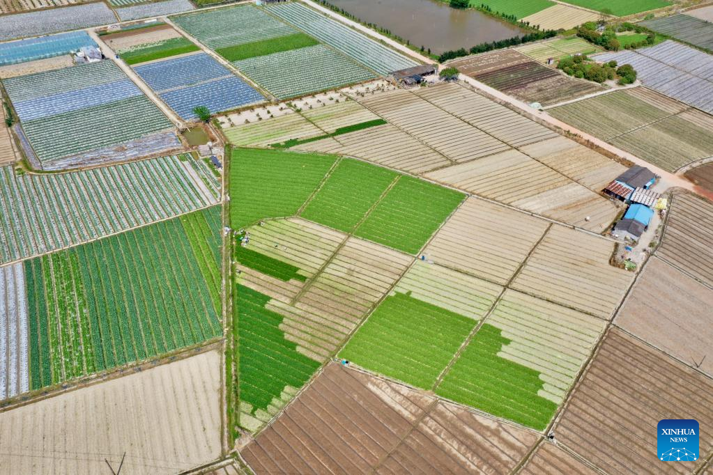 Aerial photo taken on April 12, 2022 shows a vegetable and flower planting base in Nantong Township of Minhou County, southeast China's Fujian Province. (Xinhua/Jiang Kehong)