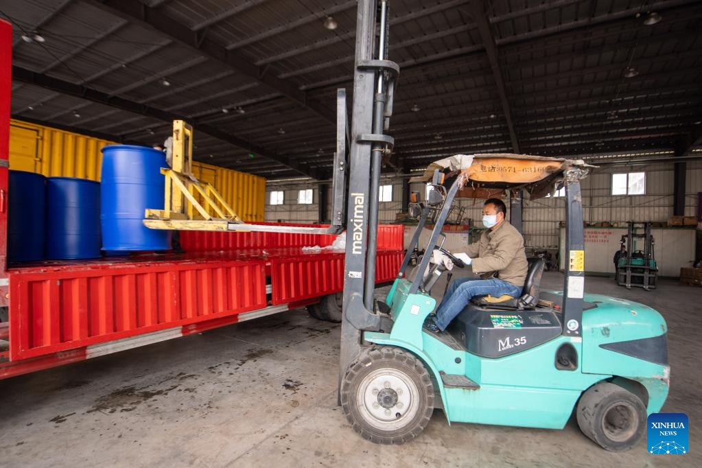 The port is one of the important logistics hubs in the city. The staff of the highway port, the workers of the logistics companies and the truck drivers have been working hard to facilitate supplies for households and industries amid COVID-19 flare-ups in certain parts of the country. (Xinhua/Jiang Han)