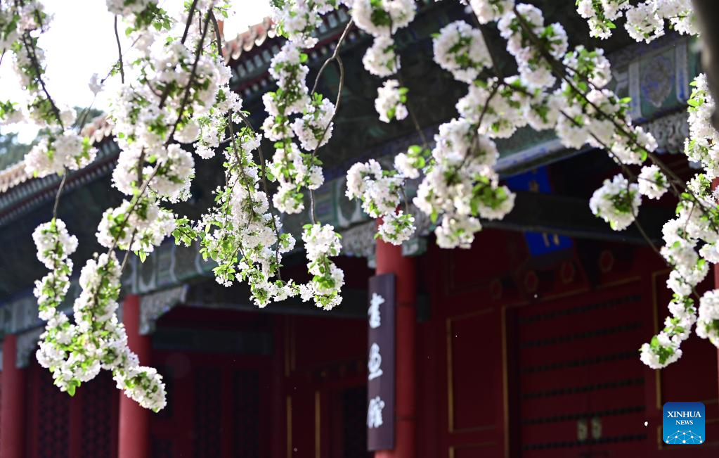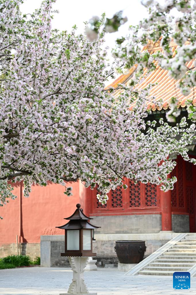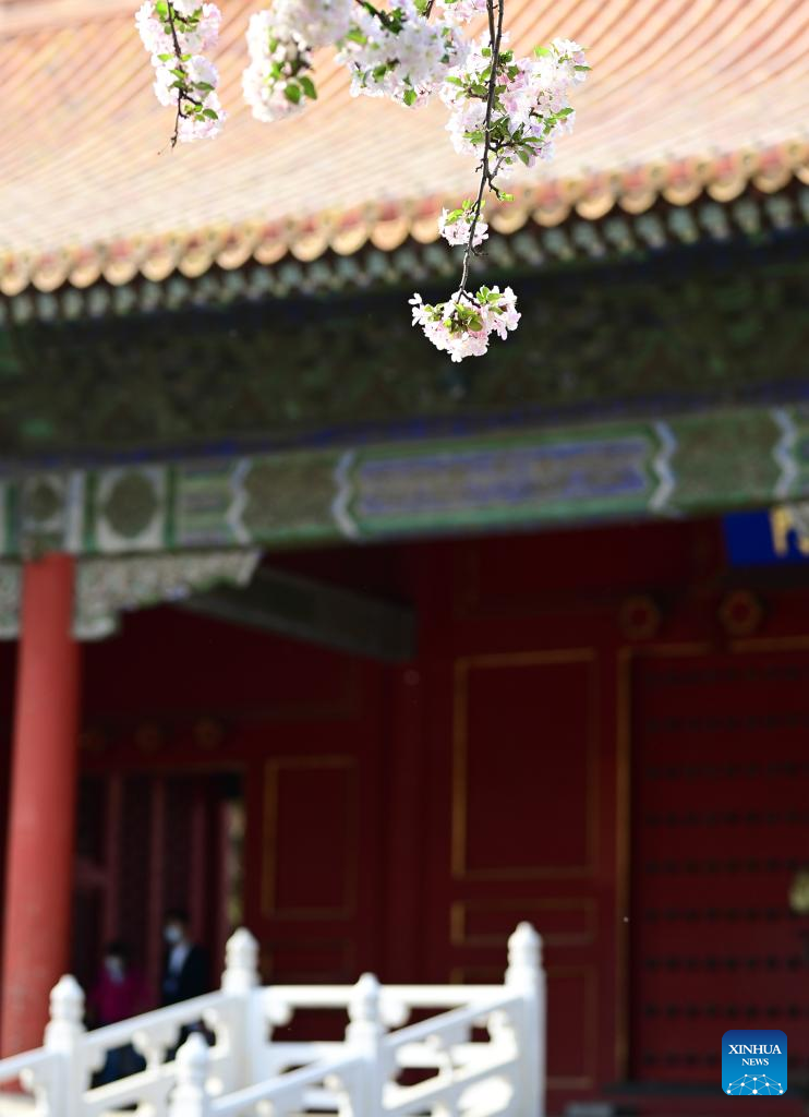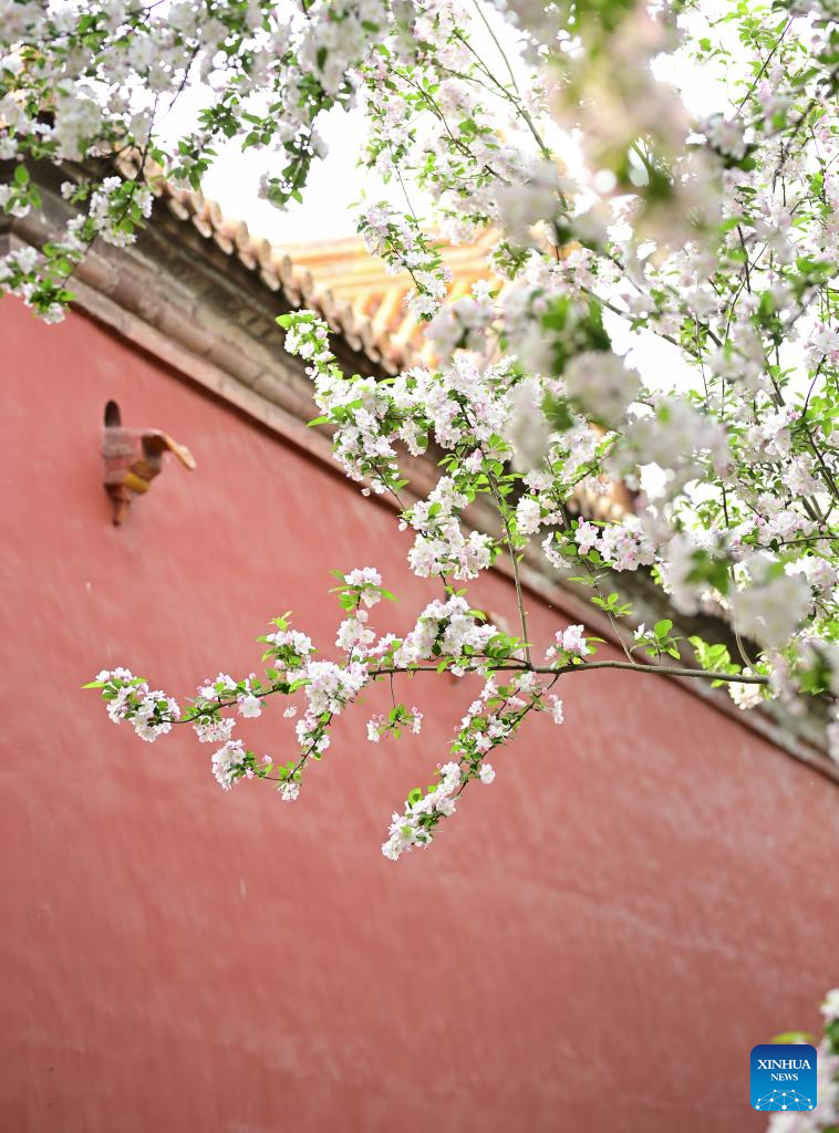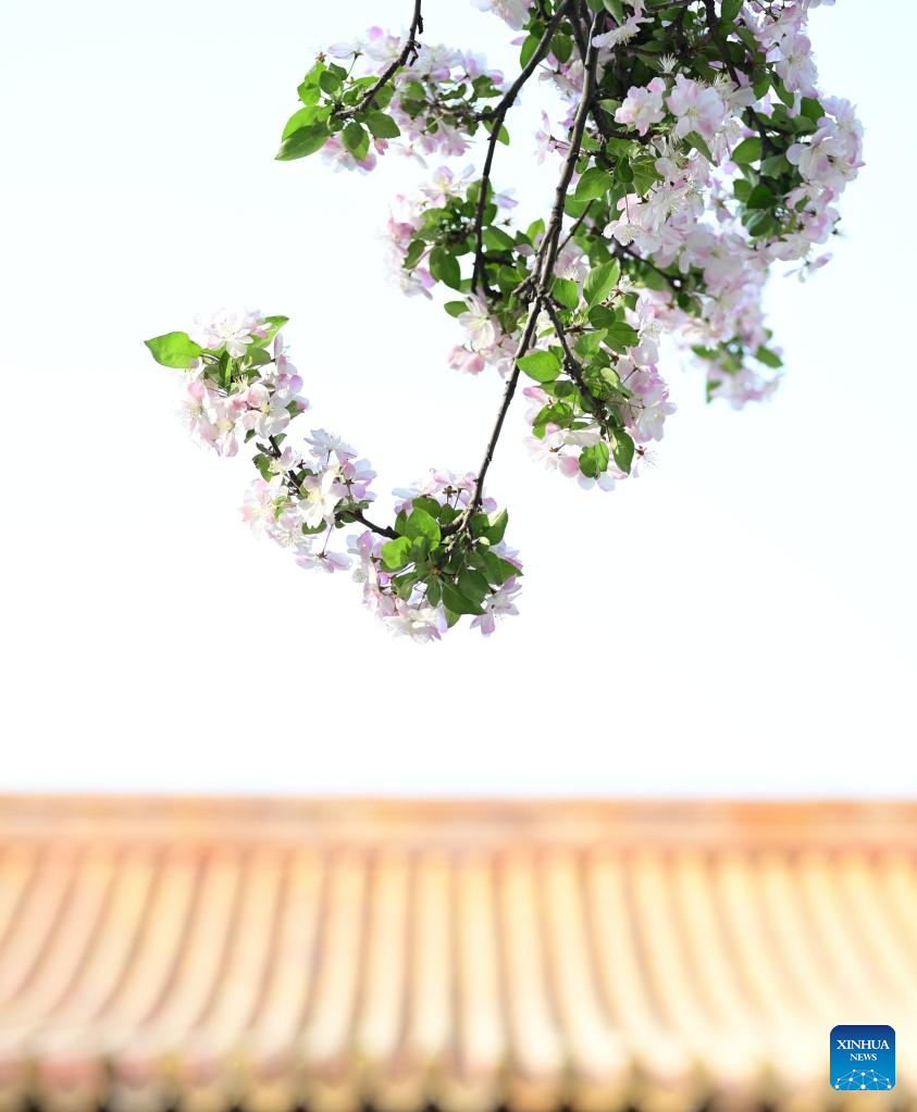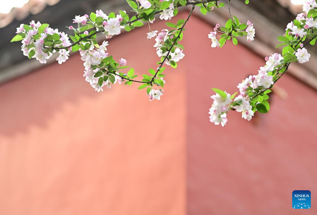 Photo taken on April 13, 2022 shows begonia flowers in the Palace Museum, also known as the Forbidden City, in Beijing, capital of China. (Xinhua/Yin Dongxun)