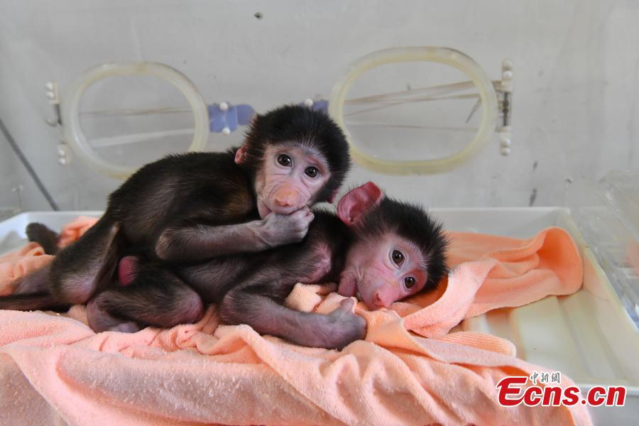 Two baby baboons play in an incubator at Yuanan Wildlife Park, Kunming, capital of southwest China’s Yunnan Province, April 12, 2022. Zoo keepers take care of them in an incubator around the clock. (Photo: China News Service/Liu Ranyang)