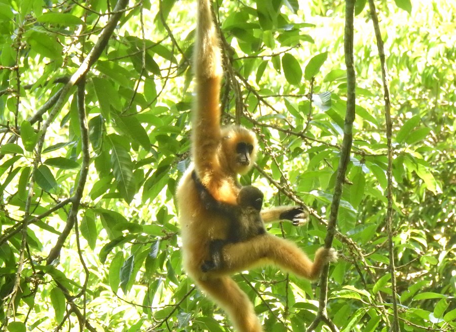 HAIKOU, April 13 (Xinhua) -- With more Hainan gibbon infants spotted and new macrofungi species discovered, the construction of the Hainan Tropical Rainforest National Park has made significant contribution to the local biodiversity.