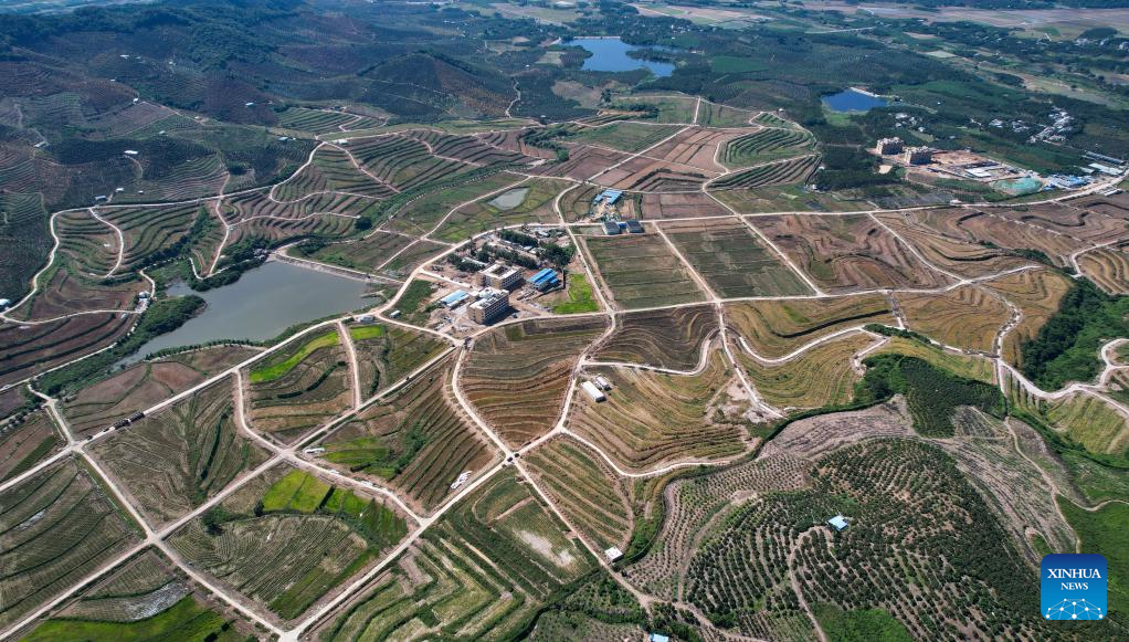 Aerial photo taken on Nov. 24, 2021 shows the Nanfan seed breeding project in Sanya, south China's Hainan Province. The Yazhou Bay Seed Laboratory, which opened in May last year, has gathered over 800 research staff to work toward seed industry innovation in Hainan in collaboration with 19 member institutions. The laboratory is situated in the Nanfan breeding base in Hainan, which is dubbed the "silicon valley" of China's seed industry. Thousands of scientists from across the country visit the base each year to undertake seed breeding, thanks to its unique light and heat resources. (Xinhua/Yang Guanyu)