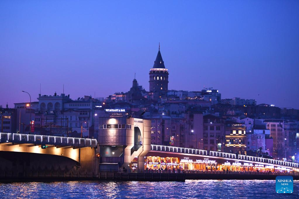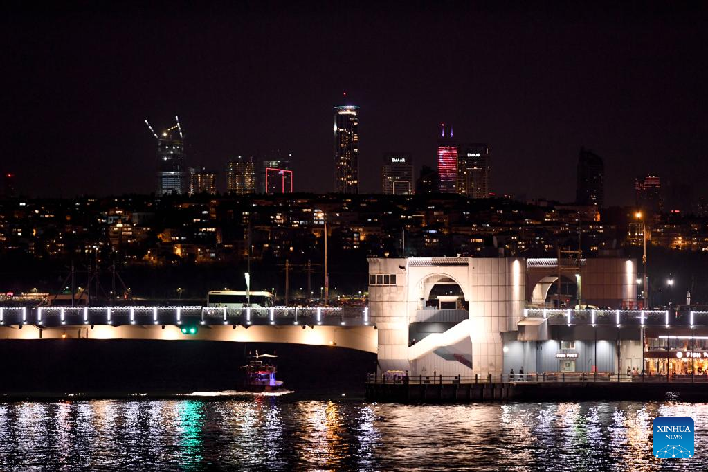 Photo taken on April 13, 2022 shows a night view of Istanbul, Turkey. (Xinhua/Shadati)