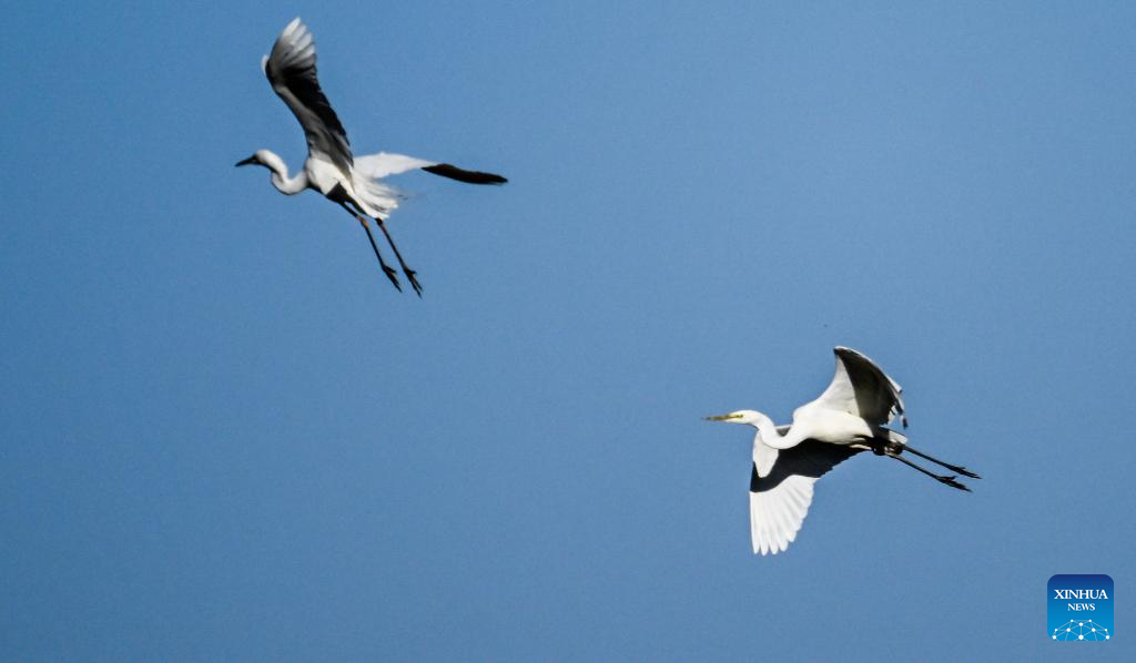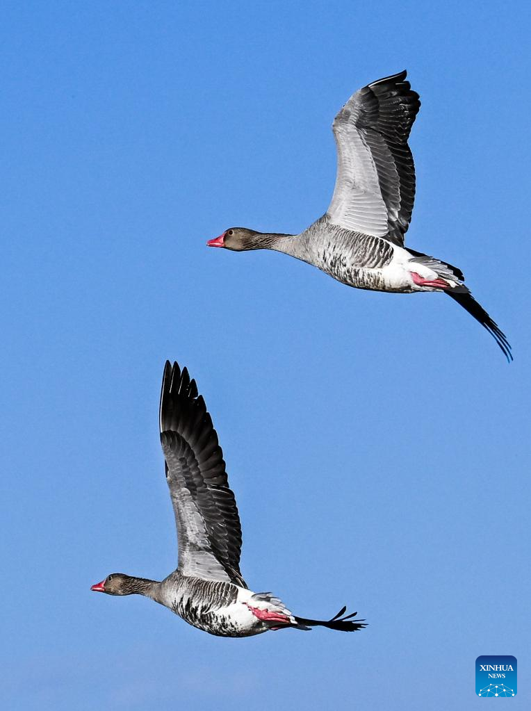 Migrant birds are pictured at Juyanhai wetland in Ejina Banner of Alxa League, north China's Inner Mongolia Autonomous Region, April 13, 2022. (Xinhua/Lian Zhen)