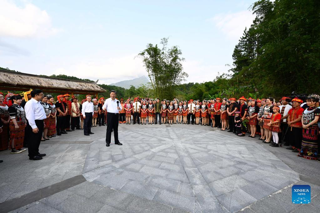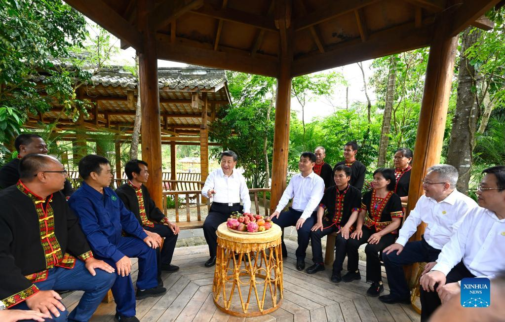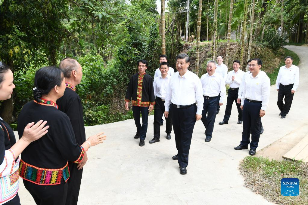 Chinese President Xi Jinping, also general secretary of the Communist Party of China Central Committee and chairman of the Central Military Commission, visits Maona, a village in the city of Wuzhishan, to learn about the alignment of rural revitalization with the achievements in poverty alleviation during his inspection tour in the southern province of Hainan, April 11, 2022. (Xinhua/Xie Huanchi)