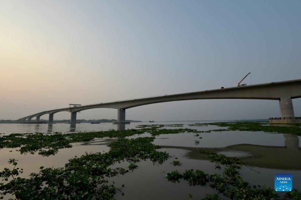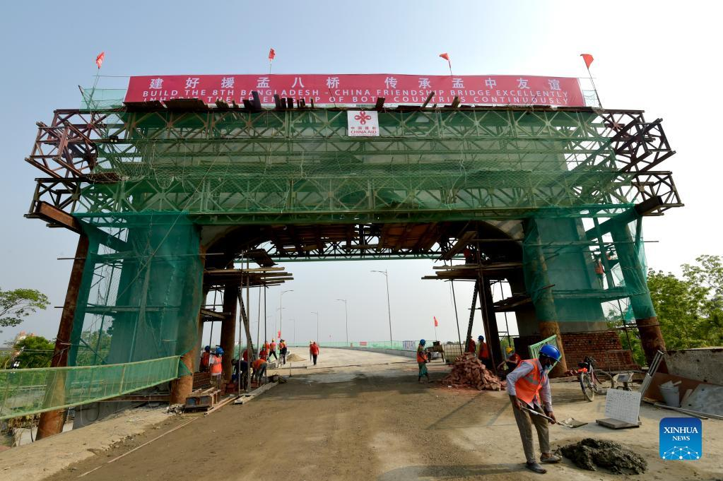 Photo taken on March 23, 2022 shows the eighth Bangladesh-China Friendship Bridge under construction in Pirojpur, Bangladesh. China Railway 17th Bureau Group Co. Ltd. is constructing the bridge over Kocha River in Pirojpur district, 185 km southwest of Dhaka, under the management of China Railway Major Bridge Reconnaissance &Design Institute Co. Ltd. (Xinhua)