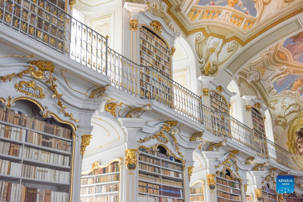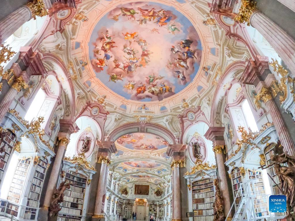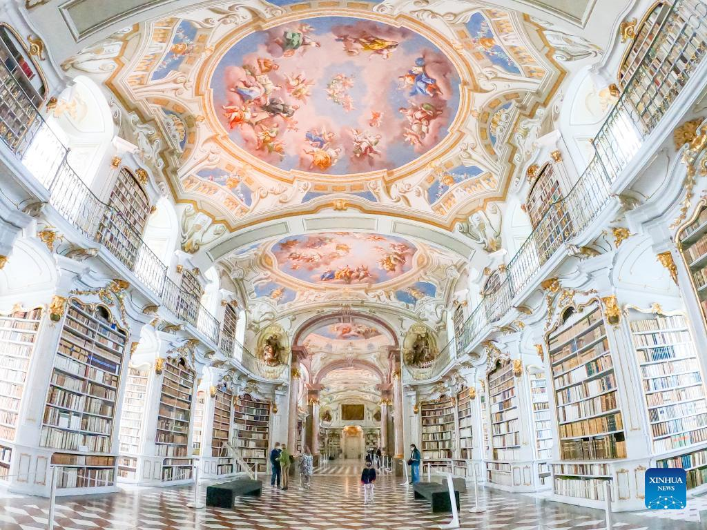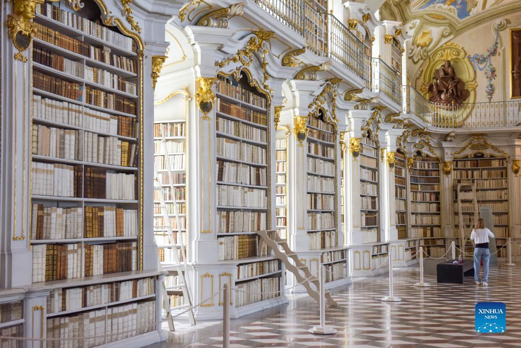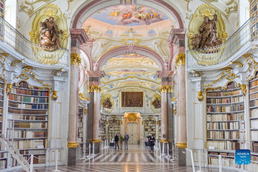 Photo taken on April 13, 2022 shows a view of the library of Admont Abbey in Admont, Austria. (Xinhua/Guo Chen)