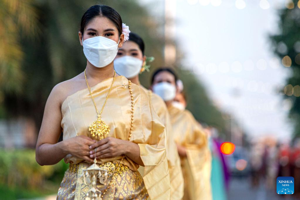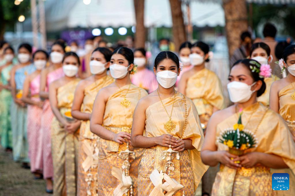 From April 13 to 15 every year is the traditional Thai New Year Songkran Festival. People will express their greetings by splashing water on each other. Affected by the COVID-19, Thailand has cancelled the street splashing celebration for the third consecutive year. (Xinhua/Wang Teng)