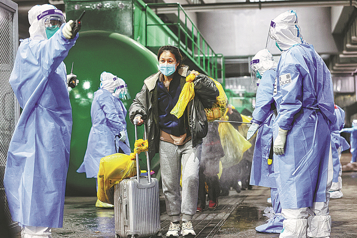 Patients who have recovered from COVID-19 leave the National Exhibition and Convention Center, the largest makeshift hospital in Shanghai, on April 14, 2022. [Photo by Lai Xinlin/Jiefang Daily]