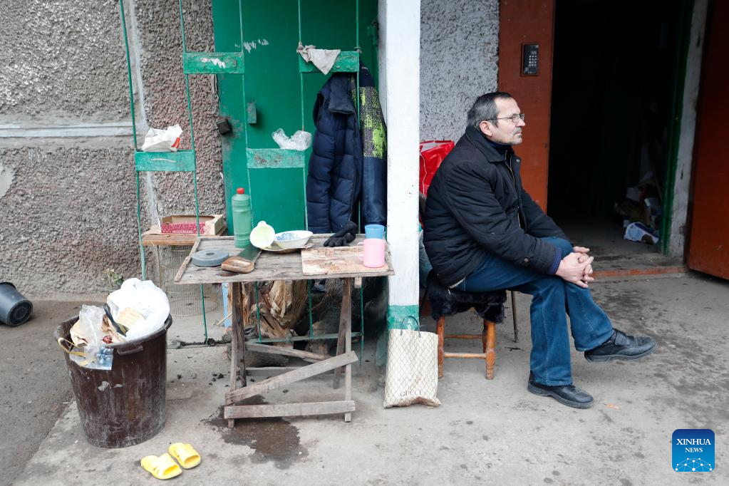 A resident rests outdoors in Mariupol, April 12, 2022. (Photo by Victor/Xinhua)