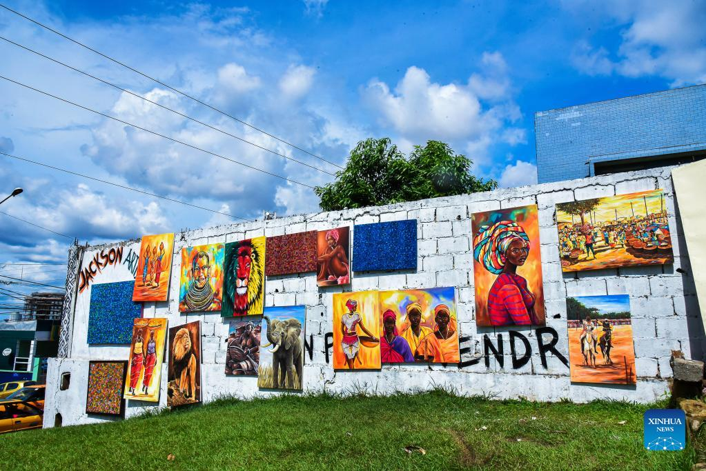 Paintings are displayed at a gallery in Yaounde, Cameroon, on April 14, 2022. Celebrations to mark the World Art Day were held in Yaounde from April 12 to April 14. (Photo by Kepseu/Xinhua)