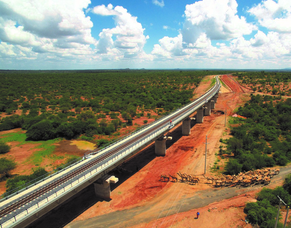 Animals cross a railway bridge of the China-built Mombasa-Nairobi Standard Gauge Railway. (Photo courtesy of China's Ministry of Commerce)