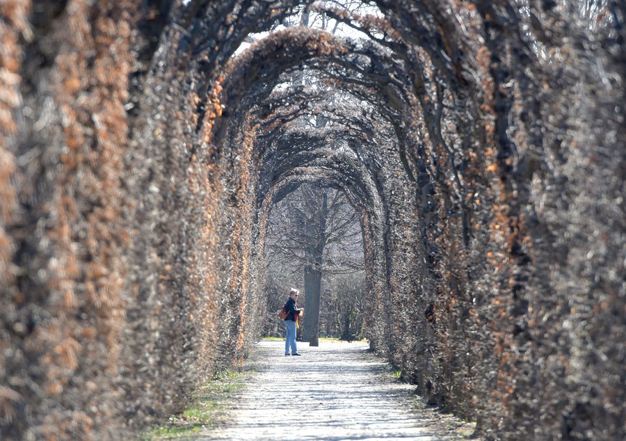A tourist visits the Schonbrunn Gardens in Vienna, Austria, March 24, 2022. (Xinhua/Guo Chen)