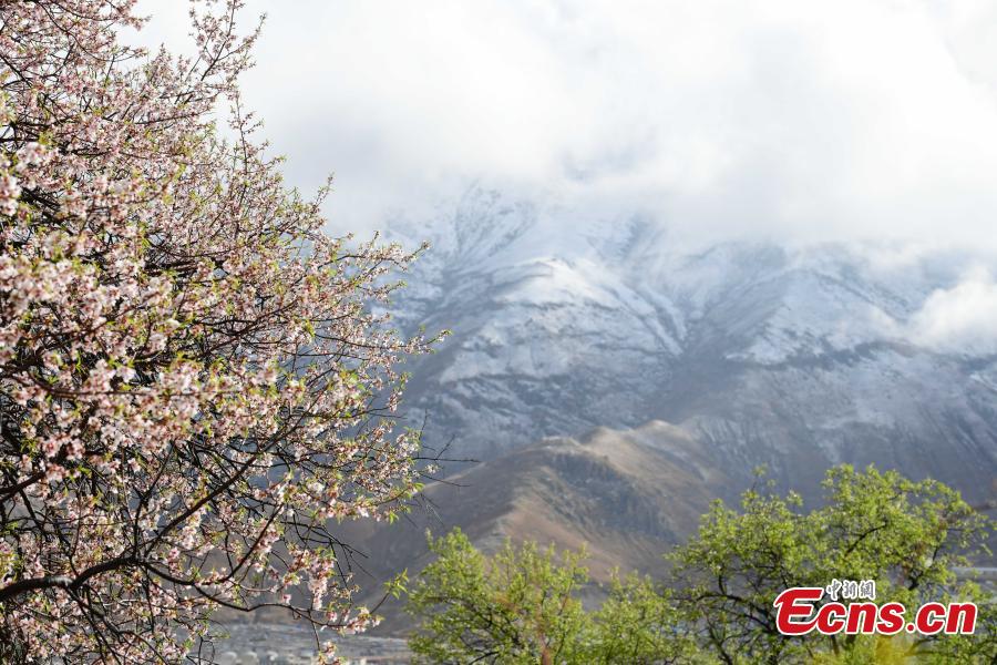 Photo shows the breathtaking snow scenery in Lhasa, capital of southwest China's Tibet Autonomous Region, April 17, 2022. Lhasa witnessed a snowfall on Sunday. (Photo/China News Service)