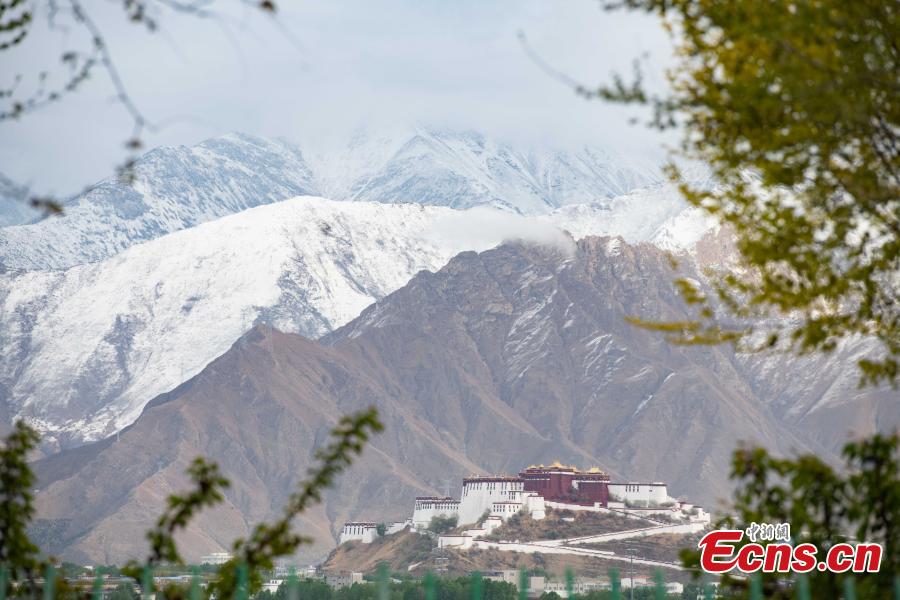 Photo shows the breathtaking snow scenery in Lhasa, capital of southwest China's Tibet Autonomous Region, April 17, 2022. Lhasa witnessed a snowfall on Sunday. (Photo/China News Service)