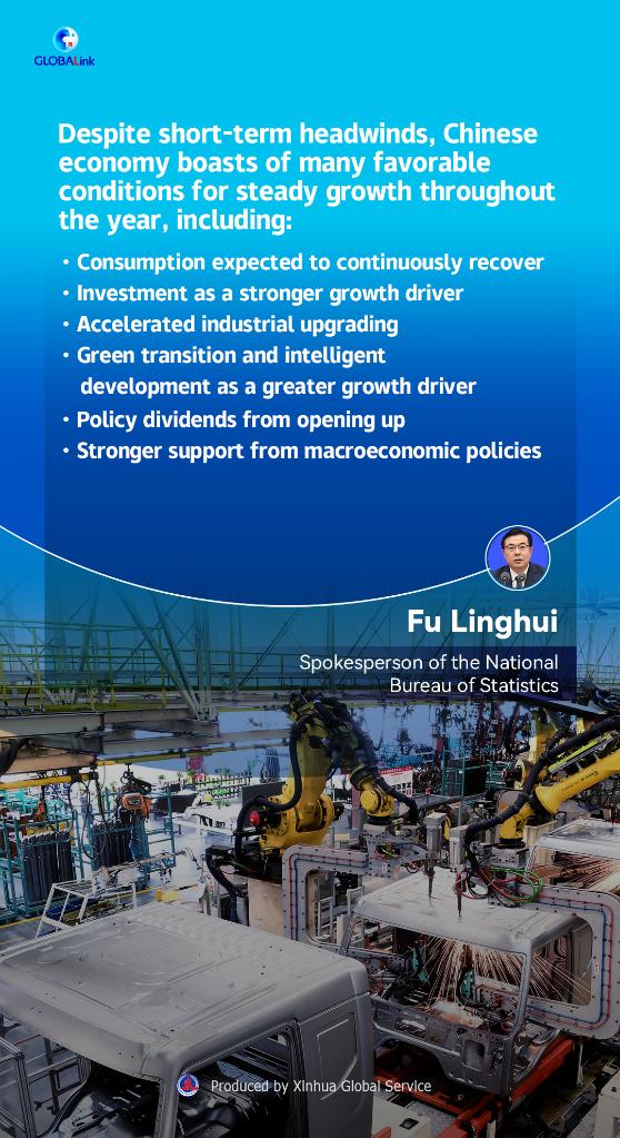 Looking into the full year, the spokesperson expressed confidence in the economy, citing favorable conditions including reviving consumption, stronger investment, and innovation-driven industrial upgrades.