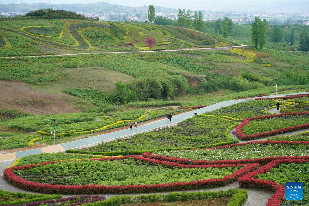 Tourists visit a scenic spot in Yangxian County of Hanzhong, northwest China's Shaanxi Province, April 16, 2022. Yangxian County, dubbed the "hometown of the crested ibis", has boosted its green economy to create a good habitat for crested ibis while developing the economy. (Xinhua/Shao Rui)