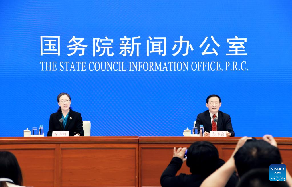 Peng Huagang, secretary-general and spokesperson of the State-owned Assets Supervision and Administration Commission (SASAC) of the State Council, speaks at a press conference held by the State Council Information Office in Beijing, capital of China, April 19, 2022. China's centrally administered state-owned enterprises (SOEs) spent more on research and development to boost innovation-driven development in the first three months of 2022, the country's top state-owned assets regulator said on Tuesday. (Xinhua/Pan Xu)