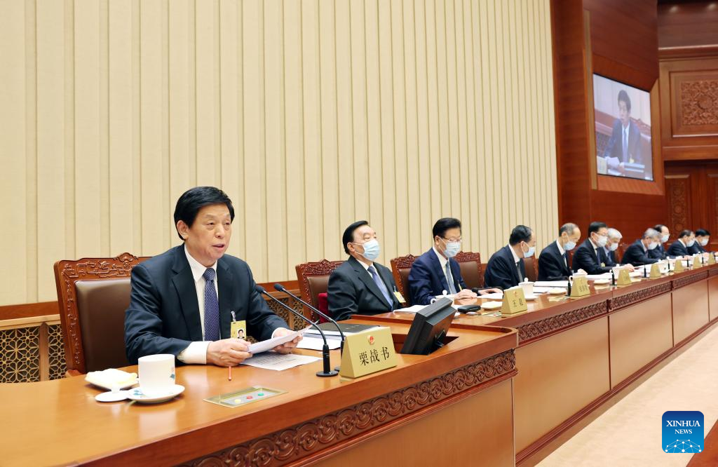 Li Zhanshu, chairman of the National People's Congress (NPC) Standing Committee, presides over the closing meeting of the 34th session of the 13th NPC Standing Committee in Beijing, capital of China, April 20, 2022. (Xinhua/Yao Dawei)