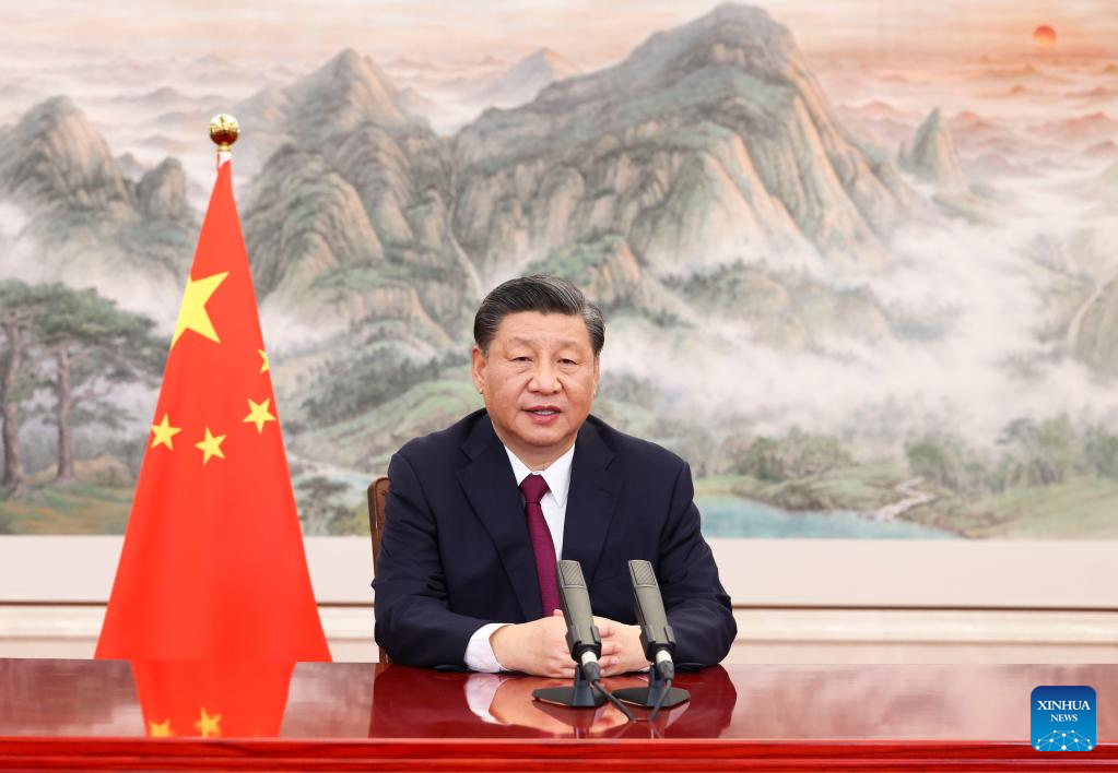 Chinese President Xi Jinping delivers a keynote speech via video at the opening ceremony of the Boao Forum for Asia Annual Conference 2022, on April 21, 2022. (Xinhua/Huang Jingwen)