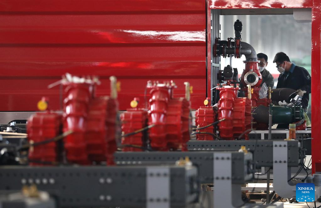 Workers process wiring harness at a factory in Anshan City, northeast China's Liaoning Province, April 19, 2022. Anshan City in Liaoning is in an orderly work resumption with strict epidemic prevention measures in place. (Xinhua/Wang Yijie)