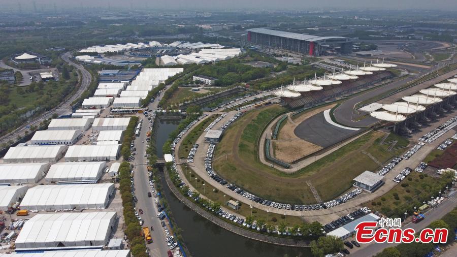 Aerial view photo shows a makeshift hospital converted from the Shanghai International Circuit to aid the fight against resurging COVID-19 in east China's Shanghai, April 20, 2022. Located at Jiading district, the hospital has a capacity of 14,000 beds. (Photo: China News Service/Yin Liqin)
